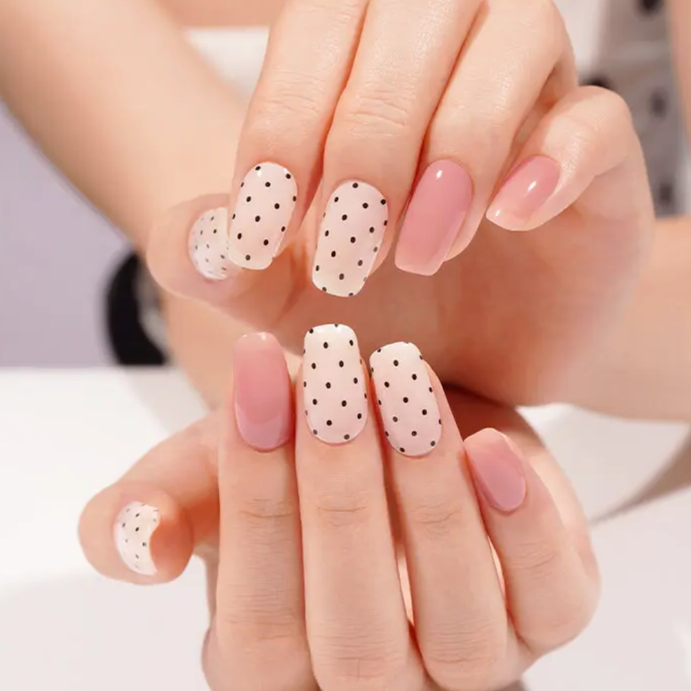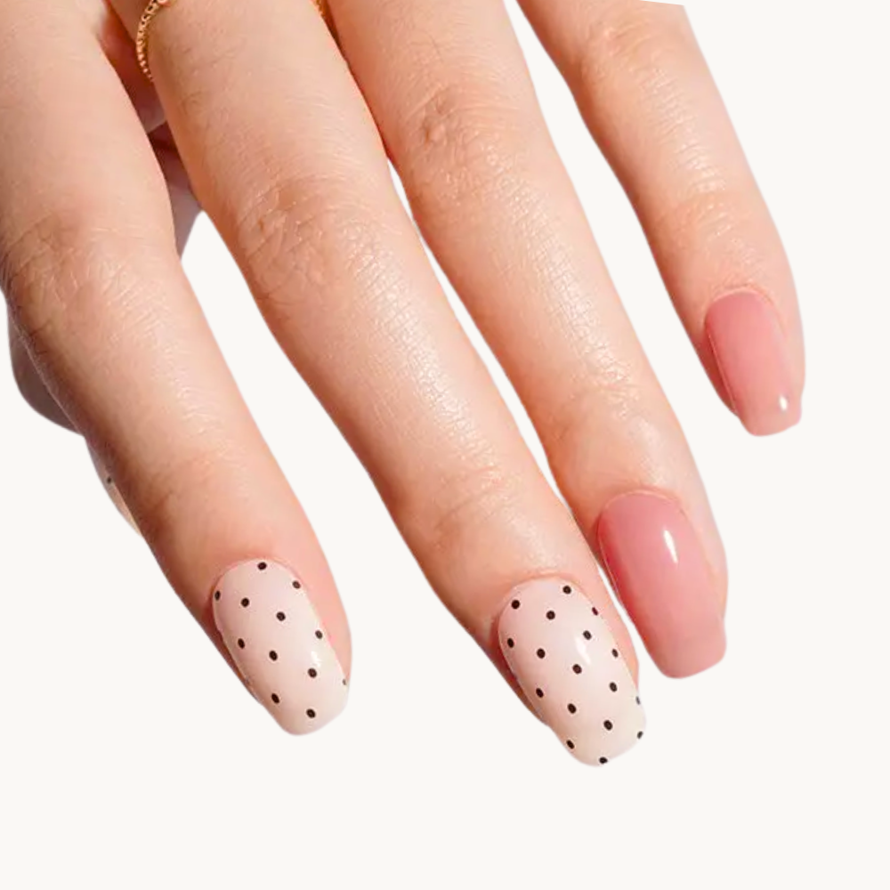 Daisy allie douceur et fantaisie avec un duo unique. Ce set combine un motif à pois noir Polka dot pour un look rétro et joyeux, avec une teinte unie élégante et minimaliste. L’association des deux permet de créer une manucure à la fois ludique et sophistiquée. Idéal pour celles qui aiment varier les styles, ce duo apporte une touche fraîche et tendance, parfaite au quotidien comme pour une occasion spéciale.