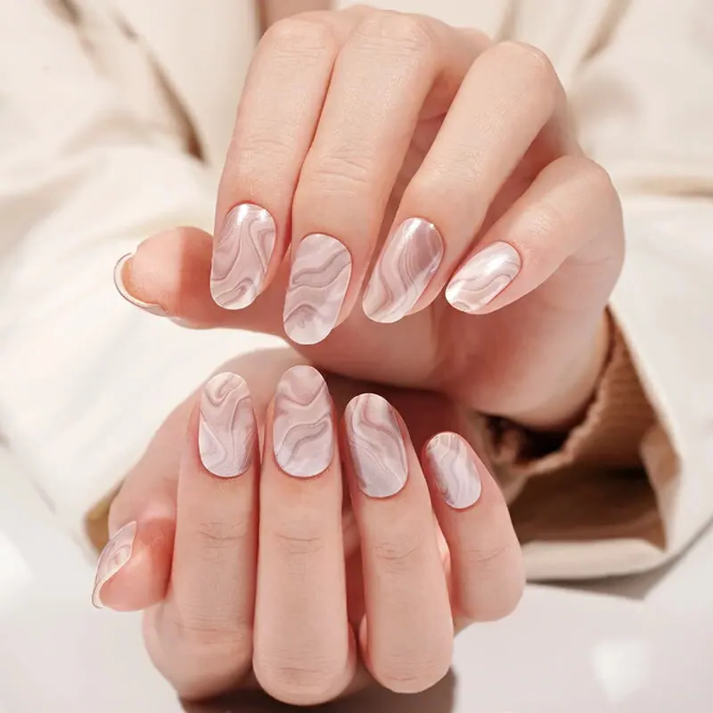 Gaia séduit par son effet marbré chromé délicat dans des tons doux et naturels. Ce design raffiné évoque l’élégance et la sérénité, apportant une touche artistique et moderne à vos ongles. Idéal pour un look sophistiqué tout en subtilité, il se porte aussi bien au quotidien que pour des occasions spéciales, mettant en valeur votre style avec grâce et finesse.