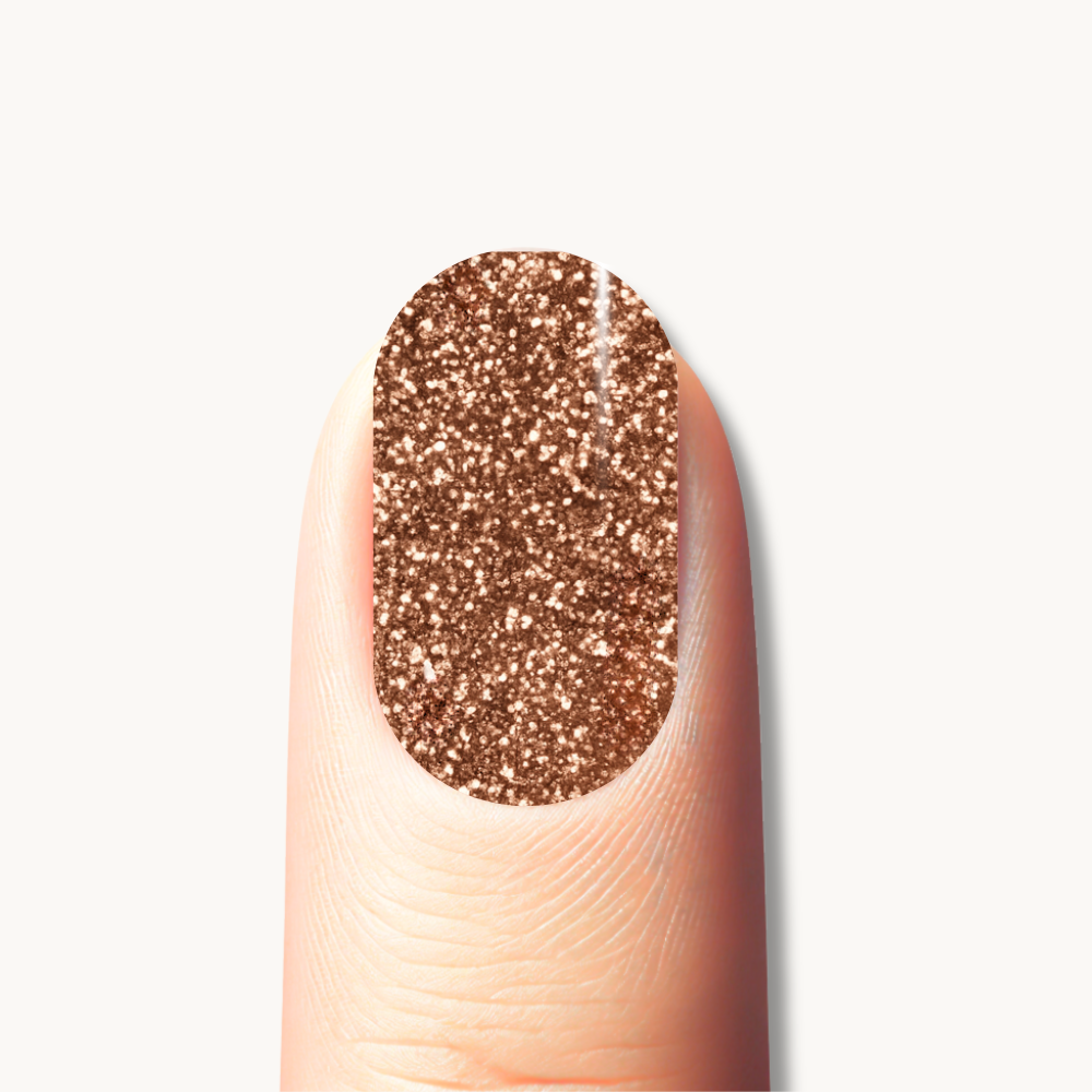 Audrey enveloppe vos mains d’un éclat chaleureux et sophistiqué. Ses paillettes bronze scintillent à la lumière, évoquant les reflets d’un feu de cheminée ou d’une soirée dorée. Glamour sans excès, ce modèle est parfait pour celles qui recherchent une manucure en gel élégante et festive tout en restant naturelle.