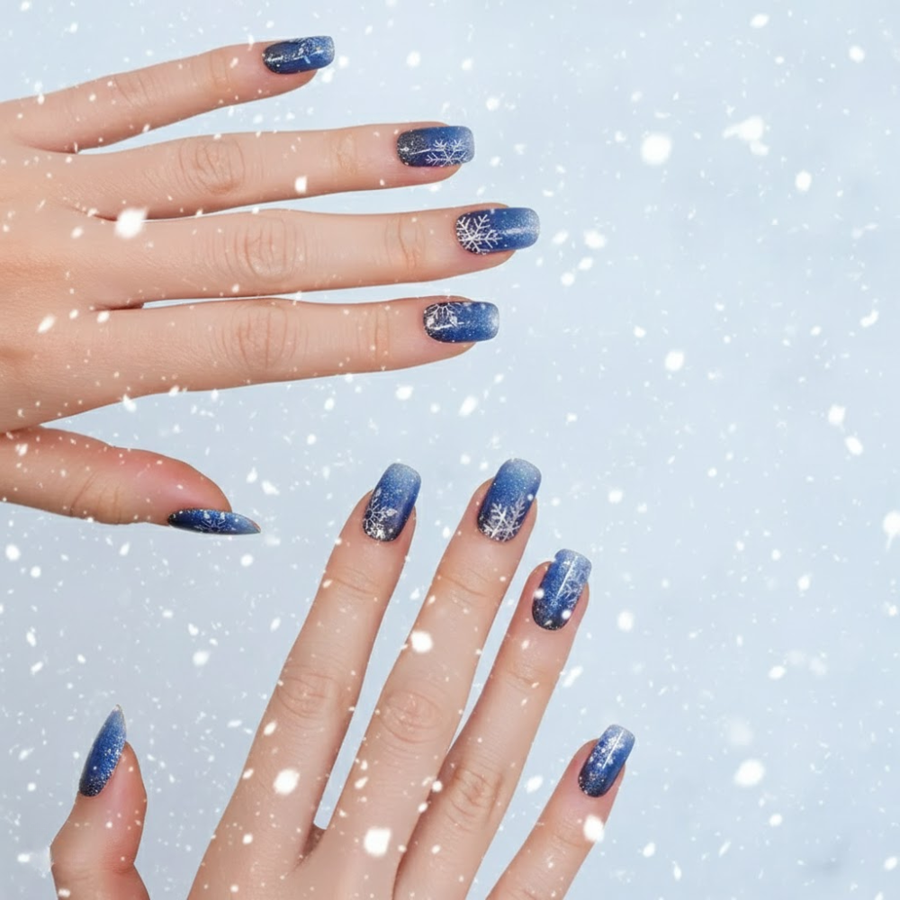 Elsa est une teinte hivernale inspirée de la magie des fêtes et des paysages enneigés. Ce modèle, avec son dégradé bleu profond et ses flocons délicats, apporte à tes ongles une touche de fraîcheur et de féerie. Parfait pour celles qui recherchent un look sophistiqué et festif, "Elsa" capture l'essence de l'hiver avec élégance. Un choix idéal pour briller durant la saison des fêtes et afficher un style unique qui allie charme et élégance.