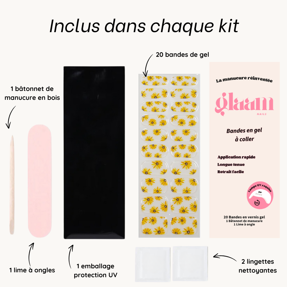 Chaque kit de manucure Glaam Nails contient :