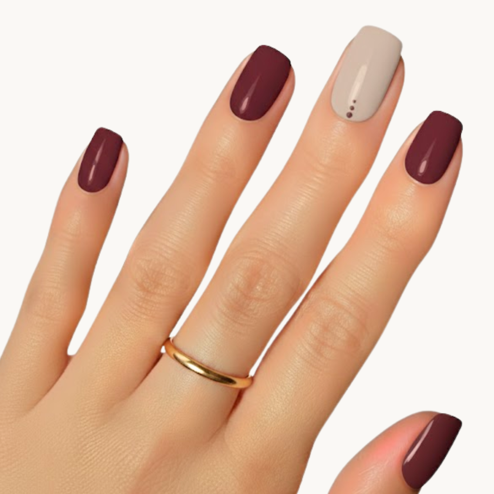 Katniss propose un rouge bordeaux profond et intense décliné en deux finitions élégantes : une version glossy classique au rendu ultra sophistiqué, et une version légèrement pailletée pour un éclat subtil et lumineux. Une manucure modulable qui s’adapte à toutes les atmosphères — du look chic minimaliste à une touche plus lumineuse et raffinée, selon l’envie.