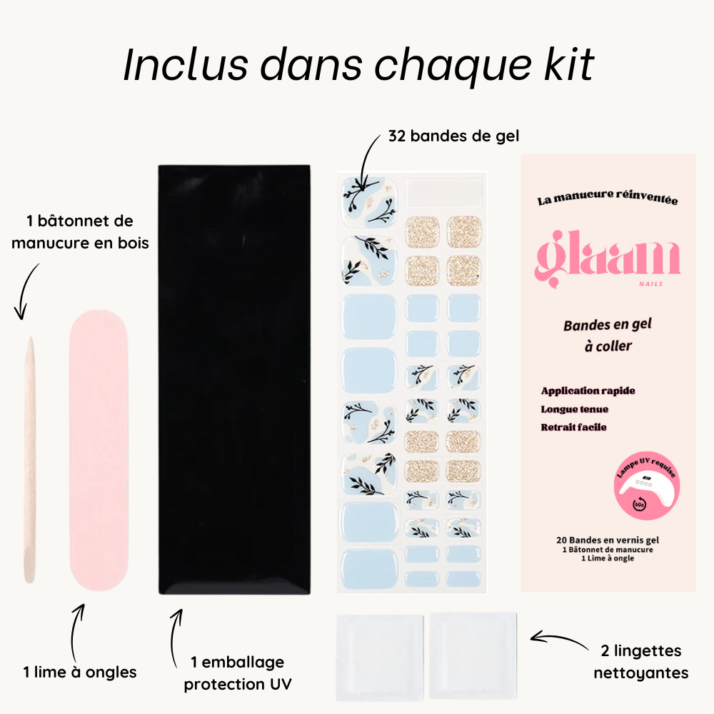 Chaque kit de manucure Glaam Nails contient :